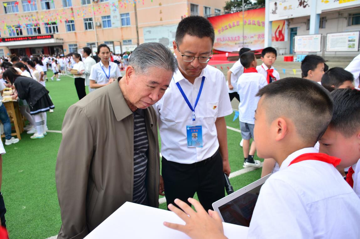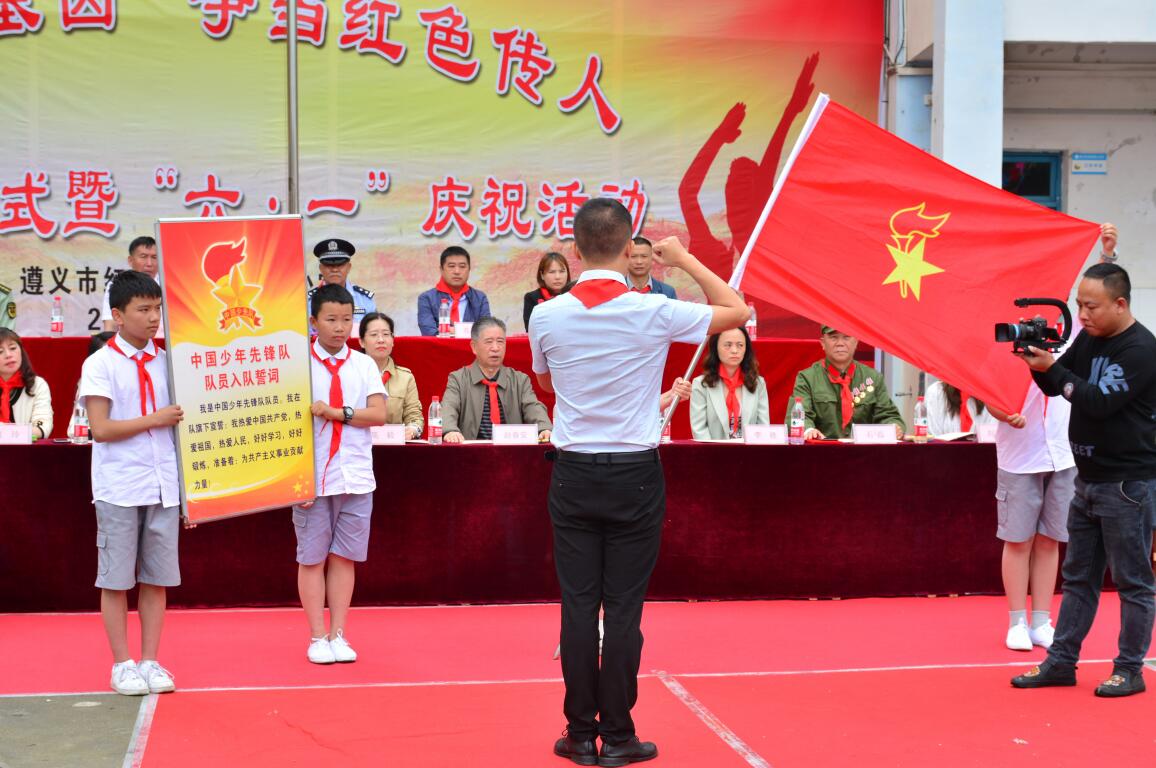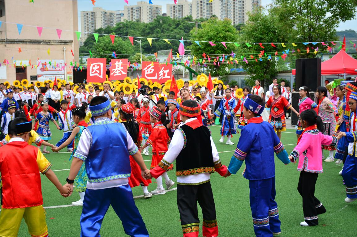 来宾和领导们首先和我校新队员、中队、中队辅导员一起参加了庄严的入队仪式结束后,少年宫文艺展演沉浸式体验活动拉开了帷幕,充分展示了少年宫社团、各年级板块等纷纷以台上台下不同形式分第一篇章《红星歌》《我向五星红旗敬个礼》《没有共产党就没有新中国》《爱我中华》五幕精彩演绎。