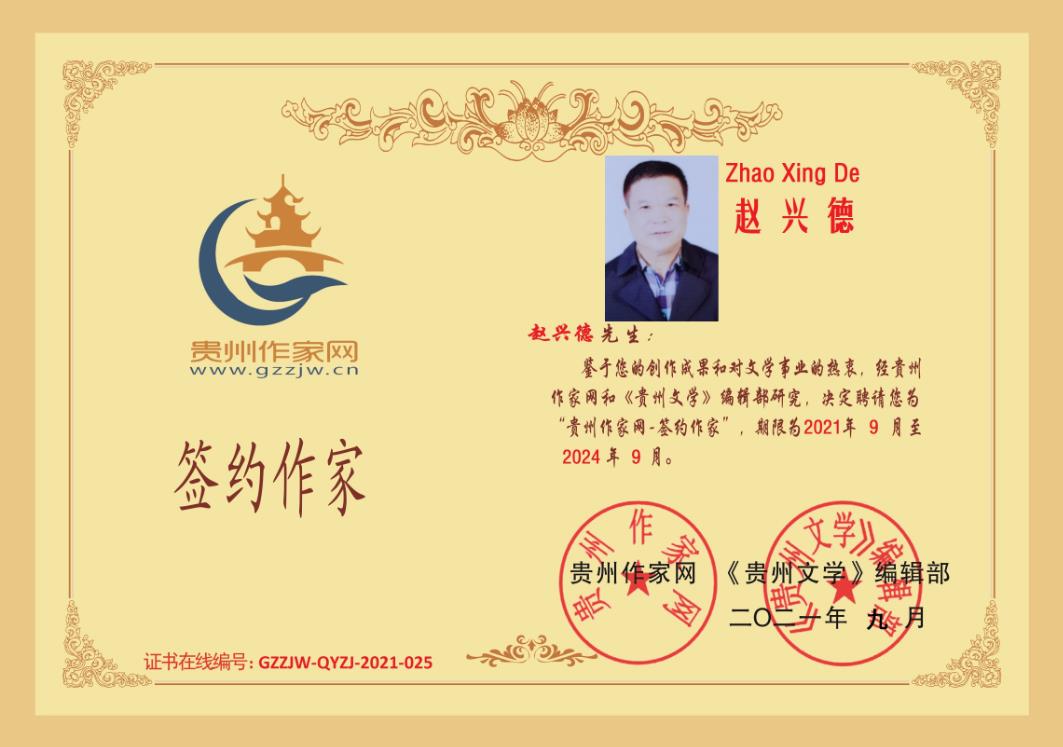 2021年9月29日,贵州省遵义市作家赵兴德成功签约贵州作家网。