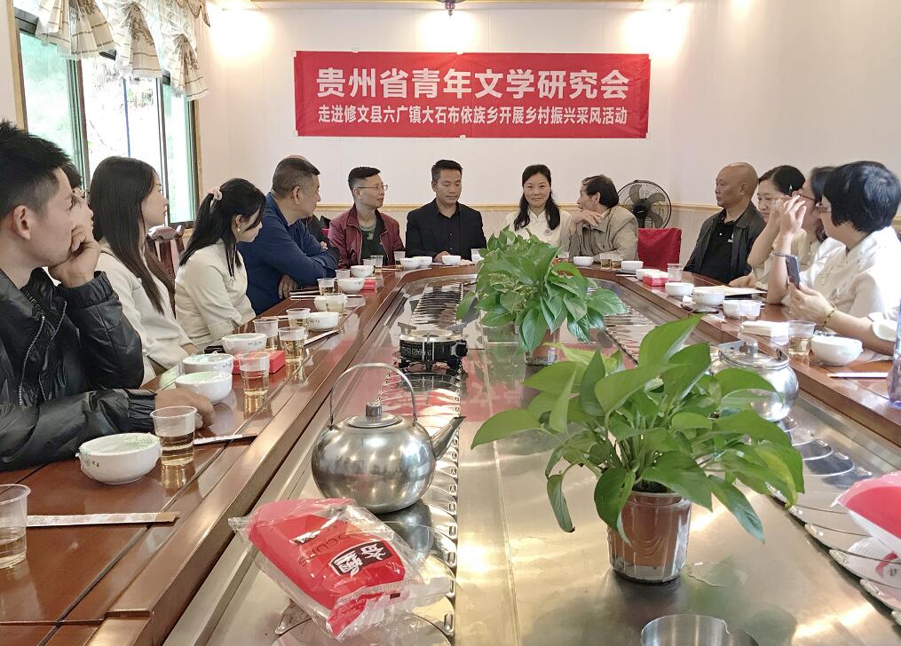 2021年10月10日,贵州省青年文学研究会会长黄彩梅、副会长陈宏、郭太东、副秘书长魏艳、黄钰华、余国辉、监事王福君、会员王思斯、罗淑英等走进修文县大石布依族乡、六桶镇开展以乡村振兴为主题的调研釆风活动。贵州日报原髙级编辑苏丹、贵阳科普作协秘书长罗万雄、贵州作家高晋福先生等参加活动。