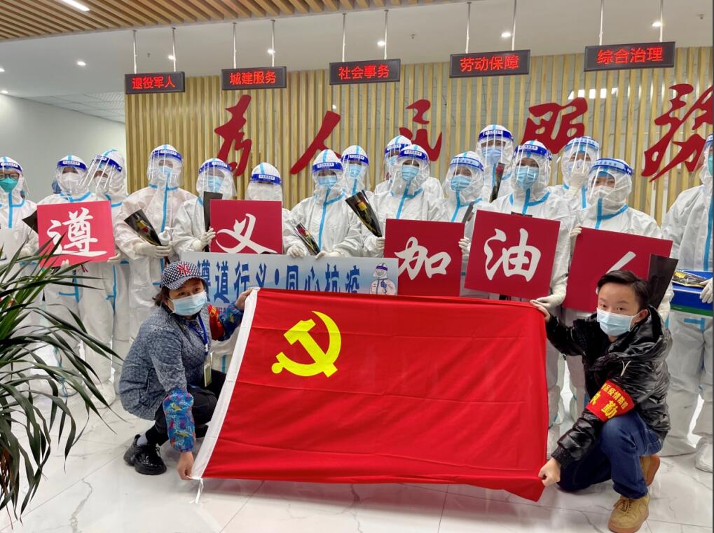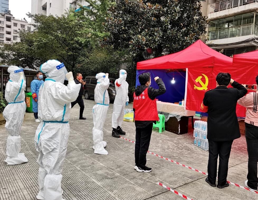“共产党员和退役军人在这次抗疫斗争中发挥的作用太大了。在共产党员的带动下,志愿者们不图名不图利,无私奉献也是值得书写的。”赵洋同志很感慨的给我说。“就在开始全员核酸检测前,我们组织了党员现场宣誓活动,每个点上的党员都面对党旗宣誓,大家从内心深处涌动着一种激情,一种不战胜疫情誓不罢休的决心。我就是一名党员,置身其中,倍受鼓舞。”宣誓时,所有的医务人员都参加了,现场的居民群众也被感动了。赵洋同志在讲述这一段的时候,显得很激动。