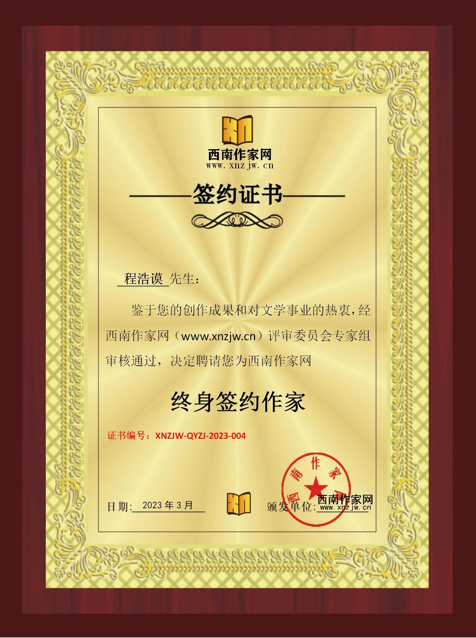 程浩谟,男,汉族,笔名:淡淡的忧伤。山东省烟台市莱州市虎头崖镇人,1974年7月出生。中国散文学会会员。