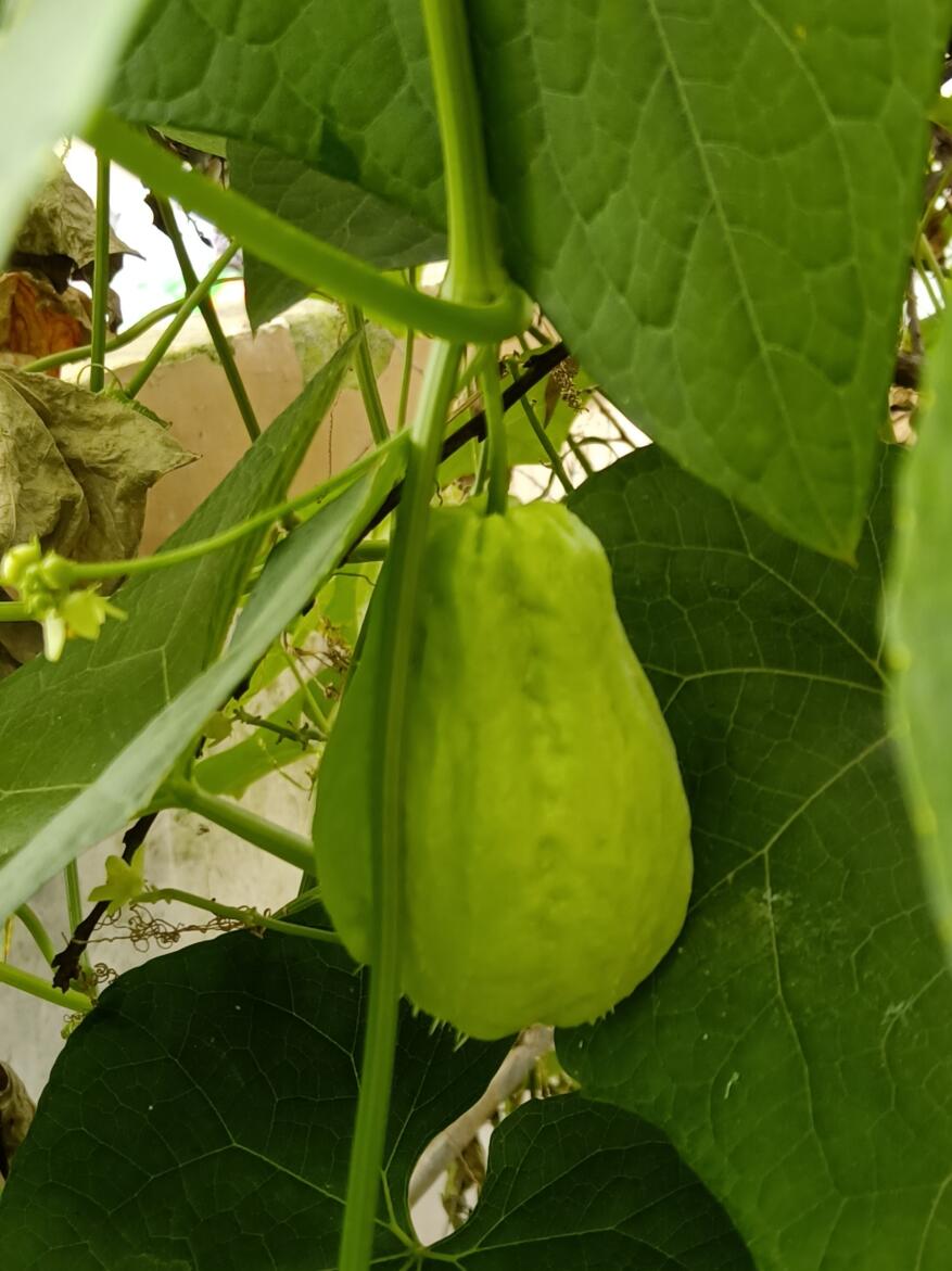 木屋外是一个“南瓜乐园”,庭院里的三两棵树上,缠绕着或青绿色或褐黄色的南瓜藤。这些瓜藤粗细不等,结的南瓜的也大小有别,有的铜钱那么小;有的鸡蛋那么大;有的碗口那么大;有的脸盆那么大。最引人注目的是有一根藤上居然结了两个脸盆那么大的金黄金黄的大南瓜。这两个大南瓜大小一样,形状一样,色泽一样,花纹一样,该不会是一对双胞胎吧?这两个瓜看上去应有20多斤重,可是一根细细的瓜藤,怎么就能承受得了如此之重呢?我心中充满了疑惑。妈妈说:瓜藤又不是一下子就承受了这么重的重量。南瓜在这根藤上从开花开始到长出铜钱那么大、鸡蛋那么大、再慢慢慢慢地长成现在这个样子,瓜藤也是跟着南瓜的不断成长去循序渐进地增加自身的承受力的。妈妈的解答言简意赅,真是涨知识了。