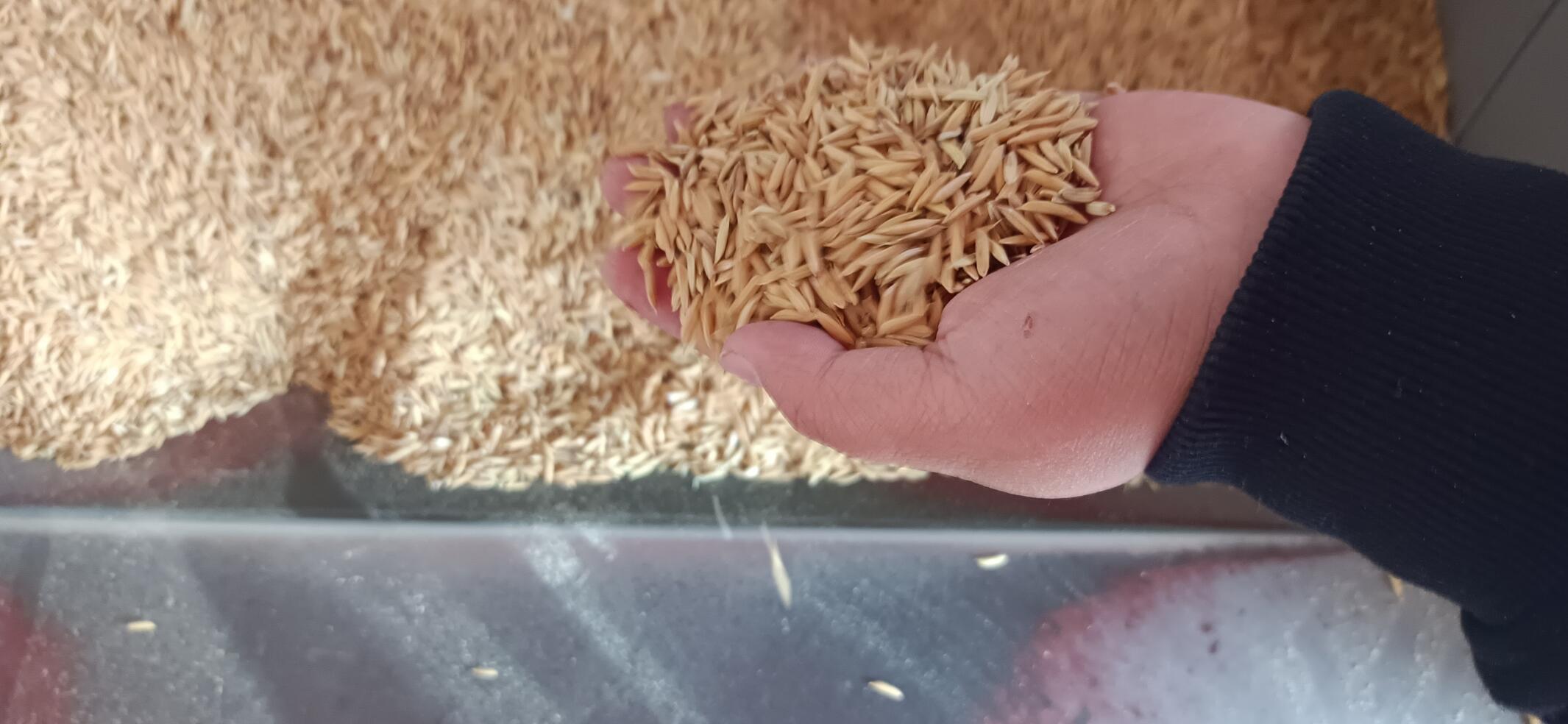 由于几个人都想买爷爷家的海龙新贡米,而他家碾好的新米不够我们几家分配,爷爷就说让我们稍等,他背点新谷子到碾房去碾成米后再给我们分称。我喜欢凑热闹,便跟着去了碾房。碾房里的打米机外形十分酷炫,体型十分庞大,到处是管子。听碾房的老板说一台打米机就是11万元。哇,这得打多少米才能赚回11万元啊!我替碾房老板着急。我向碾房老板询问打米机是怎样做到谷壳分离的?老板耐心地给我讲解说:这台打米机是靠机械力的挤压和摩擦将稻谷进行谷壳分离的。它是由进料装置、清理装置、碾米装置、出米装置4个部分组成。首先把稻谷倒进打米机的谷仓,启动电源,打米机发出一阵轰隆隆的响声,谷子通过输送管输送到清理装置,清理装置位于机架最下方,稻谷经过管道运输至碾米室将谷壳和大米分离,谷壳从位于左下方的出糠室出来了,白胖胖的大米从位于右下方的出米室出来。大米出来时还是热的呢!现在的科技发达了,也把农民从繁重的体力劳动中解放出来了。
