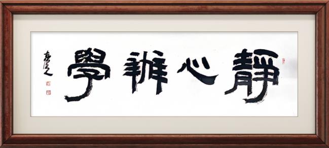 “静心办学”传递专注沉稳的教育理念,隶书的古朴庄重恰与这一内涵相契。其规整的结构、舒展的笔画,仿佛在诉说潜心治学的态度,形式与内容相辅相成,赋予作品文化深度与精神内涵。