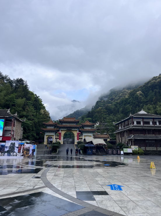 人攀金顶风撕吼,雾涌崖端瀑倒流。