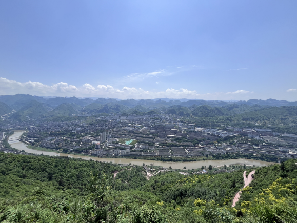 白云醉卧青峰上,赤水轻环黛镇边。
