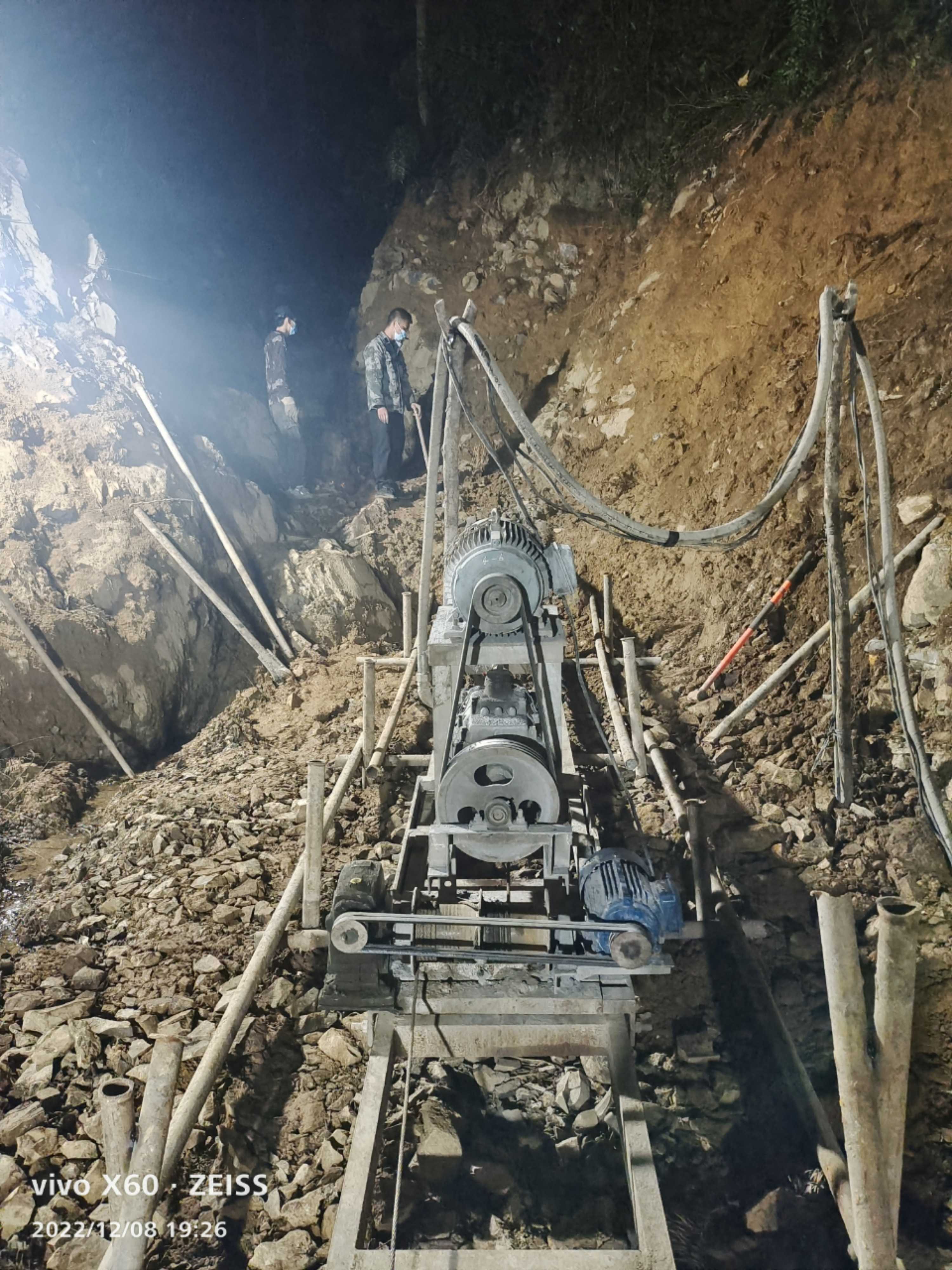 有了资金,探水工程就紧锣密鼓的开工了。挖掘机进场开挖便道。打井机械进场,夜以继日,挑灯夜战。打井机的轰鸣声引来了附近村屯群众的围观。